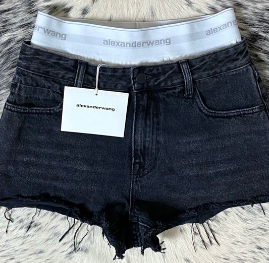 ALEXANDER WANG BRIEF LAYER LOGO ELASTIC DENIM SHORTS