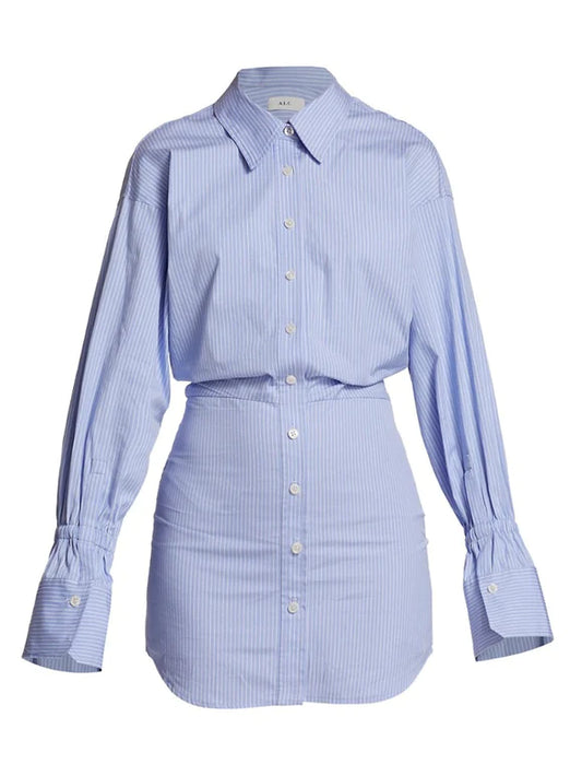 A.L.C. MONICA ll STRIPED CROPPED SHIRT IN CHELSEA